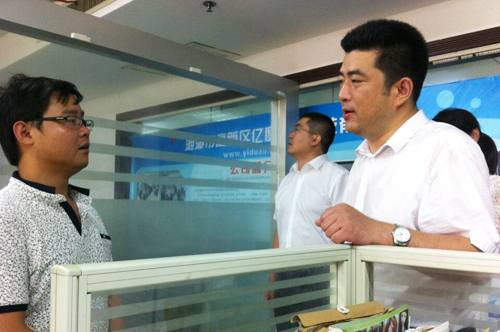 省政協副主席、省委組織部副部長、市政協主席及新聞媒體一行就湘潭大學生科技創業園國家級創業孵化示范基地揭牌儀式,第一站實業參觀考察湘潭大學生科技創業園區,地點:創新大廈-十四樓創業企業(湘潭億度網絡科技有限公司)。