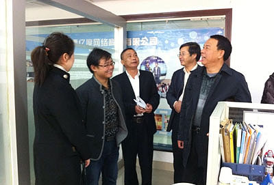 2013年11月26號上午,吉安縣就業局領導蒞臨我公司參觀指導工作。在我們聶總的陪同下,領導正在參觀公司。